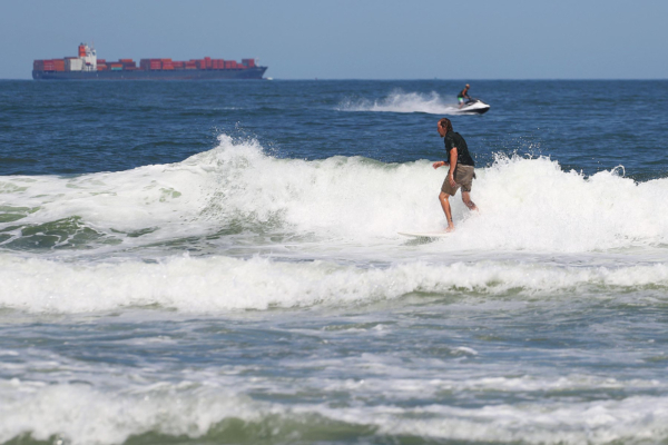 Coffee sipping pilot of a red FBM frame and a Nikon camera.